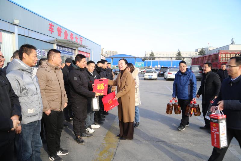 市人大常委会副主任、市总工会主席赵雅玲出席现场慰问活动,市委社会工作部、市交通运输局与市总工会的相关负责人一同参加慰问。活动为现场50多名货车司机发放了保温壶、春联、米、面、油等物品。