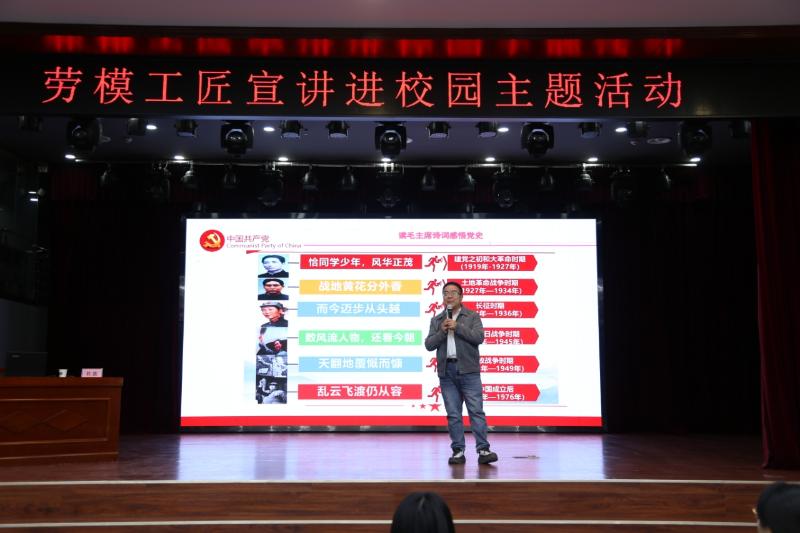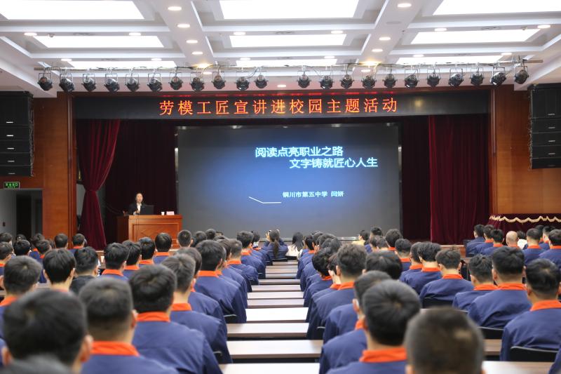 铜川市劳动模范、市五中教师闫妍以《阅读点亮职业之路,文字铸就匠心人生》为题,为现场师生讲述了自身经历,鼓励学生树立终身学习的职业品格,多读书,读好书,以文字铸魂,以匠心报国。铜川市五一劳动奖章获得者、照金干部学院讲师杜凯与现场师生共读《沁园春·雪》《七律·长征》等经典篇章,结合党史时间轴为现场师生解码毛泽东诗词中蕴含的革命智慧和感人故事,引导大家铭记革命历史,传承红色基因。
