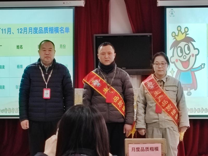 在颁奖典礼上,总厂对2025年一年来为企业发展作出突出贡献的“最美旺旺人”进行了表彰,并颁发了奖杯与现金奖励。同时,还公布了2025年11月、12月的“月度品质楷模”分别由杨博、张欢欢两位员工获此荣誉,并隆重奖励了25年年度品质楷模张旭阳,体现了企业在质量管理与员工激励方面的持续投入。